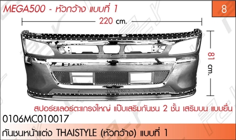 “กันชนหน้าแต่ง THAISTYLE (หัวกว้าง) สปอร์ยเลอร์ตะแกรงใหญ่ แป๊บ 1 ชั้น”
